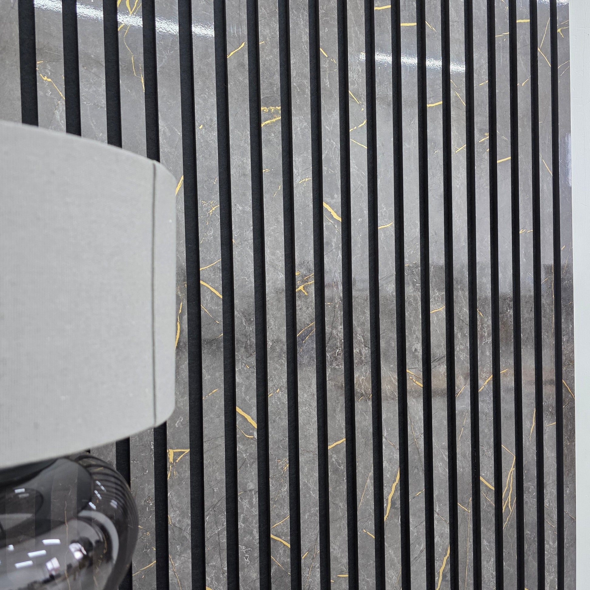 240cm x 60cm Acoustic Slatted Wall Panel Black & Gold Marble